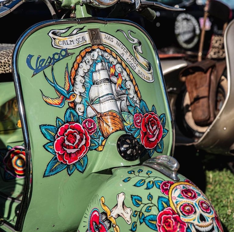 Dans les années où Lyon vibrait encore au rythme des Vespa et Lambretta, une révolution silencieuse se tramait au sein du Scooter Club Lyonnais. Fabio, président historique au charisme légendaire, et son compère Jean-Marc "Le 12", visionnaire de la première heure, eurent une idée de génie : plutôt que de laisser les divergences diviser le club, pourquoi ne pas créer des escadrilles qui permettraient à chaque passion de s'exprimer ?